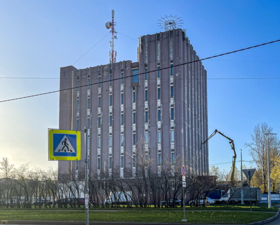 Я думал, что нас позовут проверять 5G в Высшую школу менеджмента СПбГУ, где у «Мегафона» больше года работает лаборатория. Но вместо этого представители оператора прислали мне адрес в районе метро «Проспект Ветеранов». На месте я обнаружил неприметное типовое шестиэтажное здание с маленькими окнами и закрытыми дверьми — в советское время в таких находились автоматические телефонные станции (АТС).