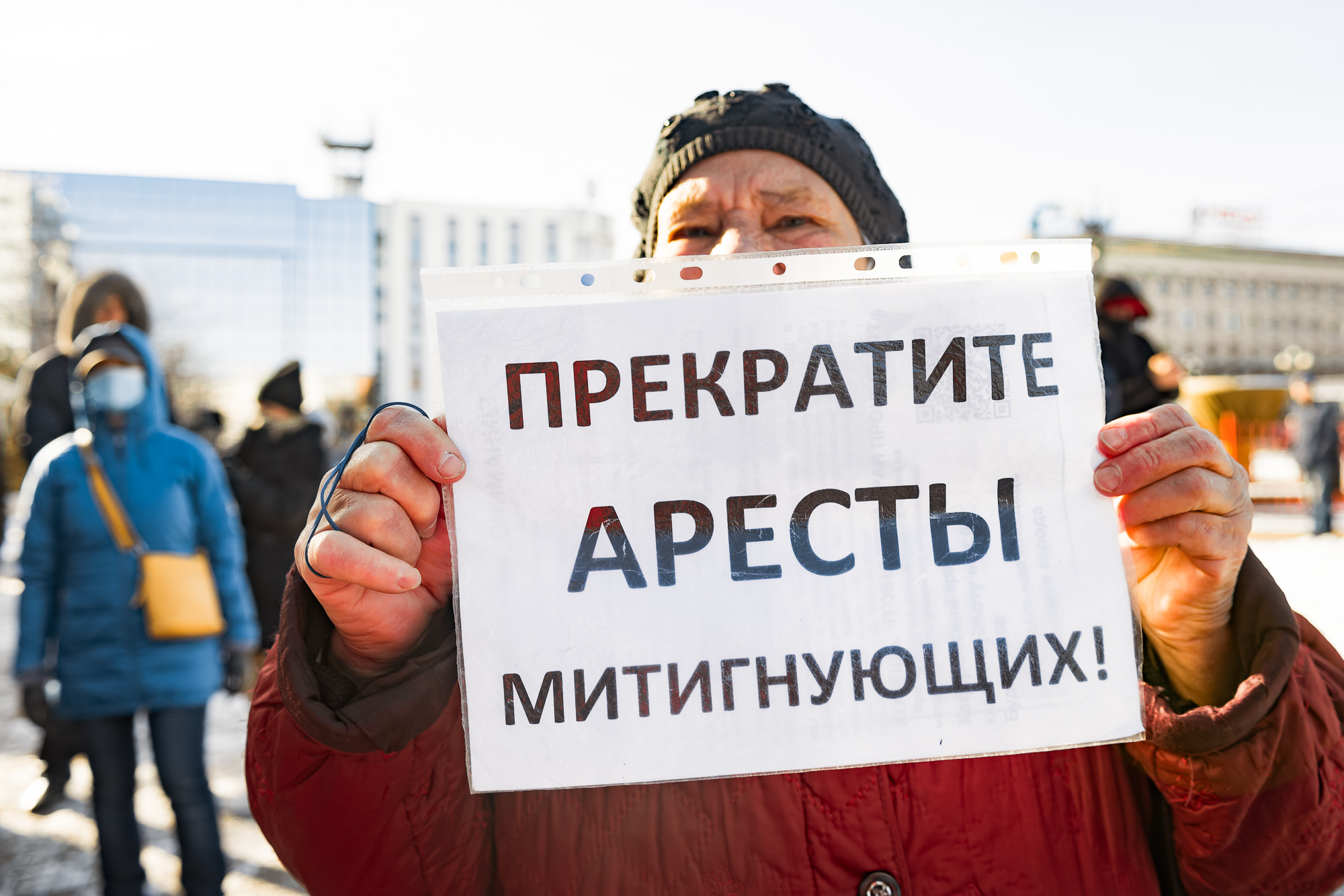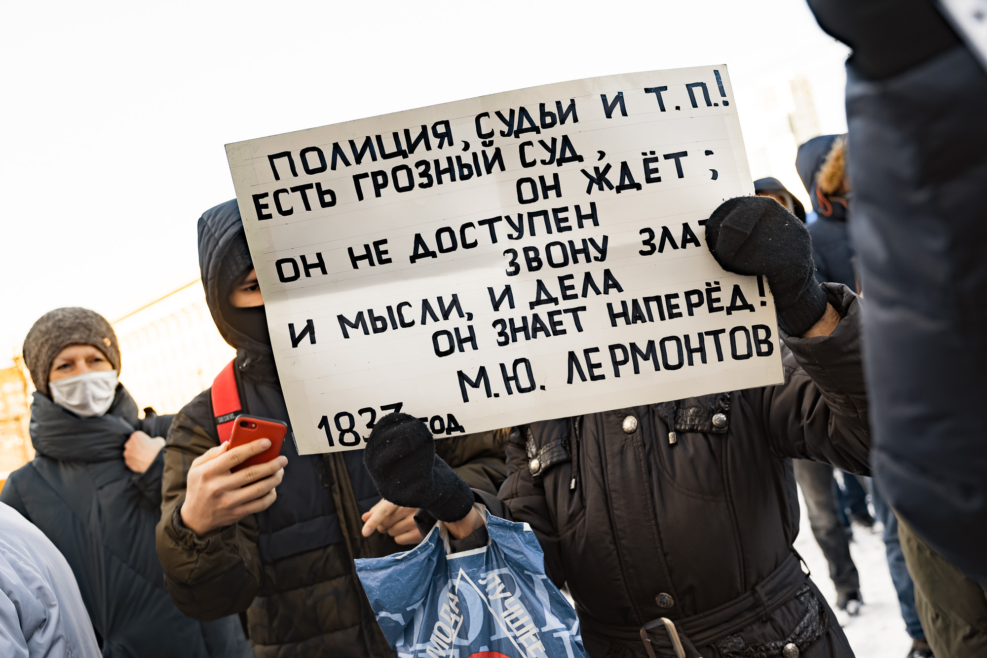 Журналисты выражают волю народа, никакие они не преступники. Преступники те, кто их захватывает, задерживает, пытается заставить не показывать то, что происходит, рассказал Владимир, в его руках плакат "Путина долой". – Но нам нельзя затыкаться. Нам надо встать с колен, потому что мы все устали от этой жизни, от вечной воли Путина.