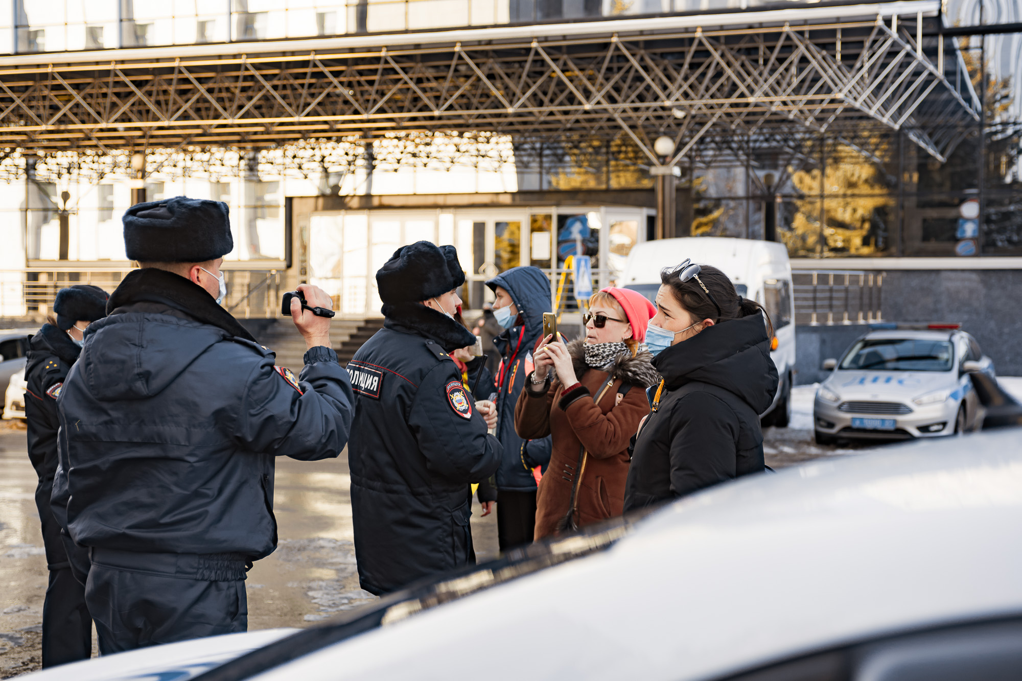 Между тем число полицейских на акции протеста значительно увеличилось. Митингующих набралось около 500 человек, а сотрудников полиции было не меньше 50. Сразу несколько из них ходили в толпе с мегафонами и предупреждали, что протестующие будут привлечены к административной ответственности за участие в несанкционированном митинге.
