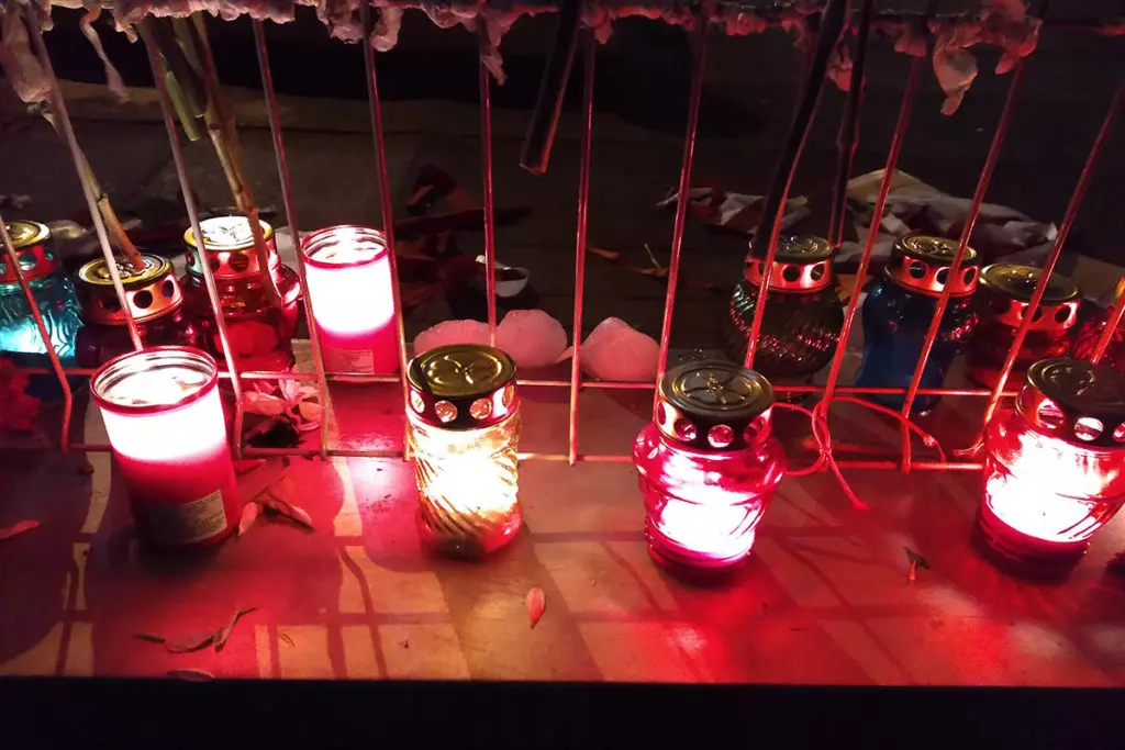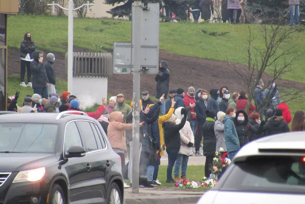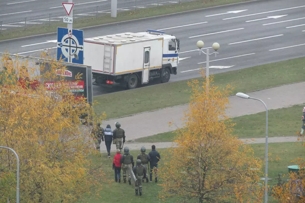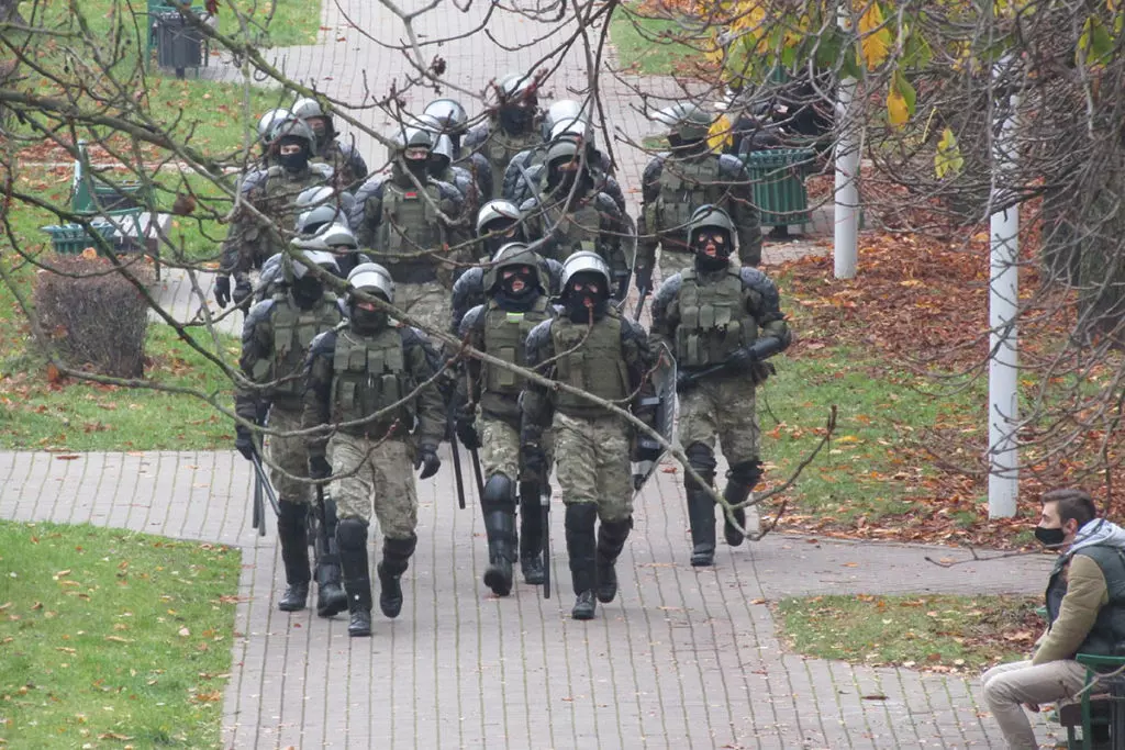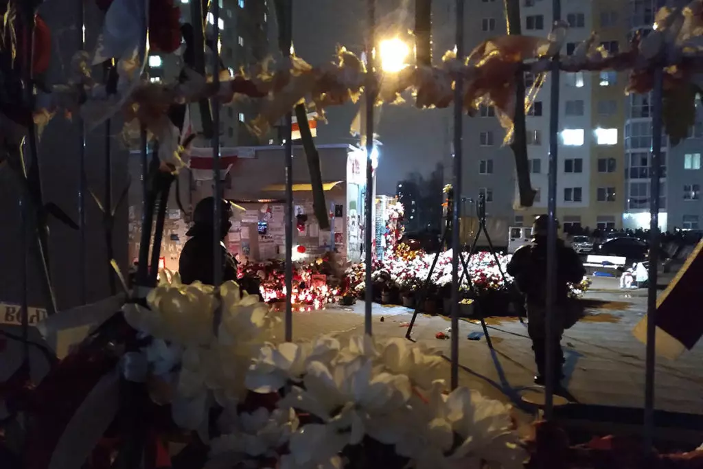 Внутренние войска прочесывают прилегающую к Пушкинской площади местность в поисках протестующих. Фото: Елена Боровская для «МБХ медиа»Силовики перегородили дорогу возле мемориала Александру Тарайковскому. Фото: Елена Боровская для «МБХ медиа»Локальные задержания на Пушкинской площади. Фото: Елена Боровская для «МБХ медиа»Водомет возле Пушкинской площади. Фото: Елена Боровская для «МБХ медиа»Люди у мемориала Александра Тарайковского показывают знак победы проезжающим мимо и сигналящим им машинам. Фото: Елена Боровская для «МБХ медиа»Сотрудники Внутренних войск залезают в грузовики перед переброской на Площадь Перемен с Пушкинской площади. Фото: Елена Боровская для «МБХ медиа»Фотография Романа Бондаренко. Пушкинская площадь. Фото: Елена Боровская для «МБХ медиа»Большой отряд сотрудников Внутренних войск ведет задержанного мужчину. Пушкинская площадь. Фото: Елена Боровская для «МБХ медиа»Стикеры на станции метро Пушкинская возле мемориала. Фото: Елена Боровская для «МБХ медиа»Мемориал Александра Тарайковского на Пушкинской площади, 15 ноября 2020 года. Несмотря на разгон, женщины возвращаются, люди приносят свежие цветы. Фото: Елена Боровская для «МБХ медиа»БКБ-флаг на одном из домов в Минске, недалеко от Площади Перемен. Фото: Елена Боровская для «МБХ медиа»Захваченный силовиками мемориал погибшего Романа Бондаренко на Площади Перемен. Фото: Елена Боровская для «МБХ медиа»Работники коммунальных служб под присмотром ОМОНа приступили к «уборке» мемориала, они снимают красно-белые ленточки с забора. Фото: Елена Боровская для «МБХ медиа»Убившие Романа Бондаренко 11 ноября неизвестные приезжали на Площадь Перемен именно для того, чобы срезать эти ленточки. Фото: Елена Боровская для «МБХ медиа»Мемориал Бондаренко. Силовики пообещали уничтожить его к утру. Фото: Елена Боровская для «МБХ медиа»Сотрудники Внутренних войск в амуниции и со щитами блокируют Площадь Перемен по периметру. Бондаренко несколько лет назад тоже служил в военной части ВВ 3214. Фото: Елена Боровская для «МБХ медиа»Лампадки на Площади Перемен. Местные жители пообещали, что завтра восстановят мемориал, как только силовики уйдут. Фото: Елена Боровская для «МБХ медиа»Next post