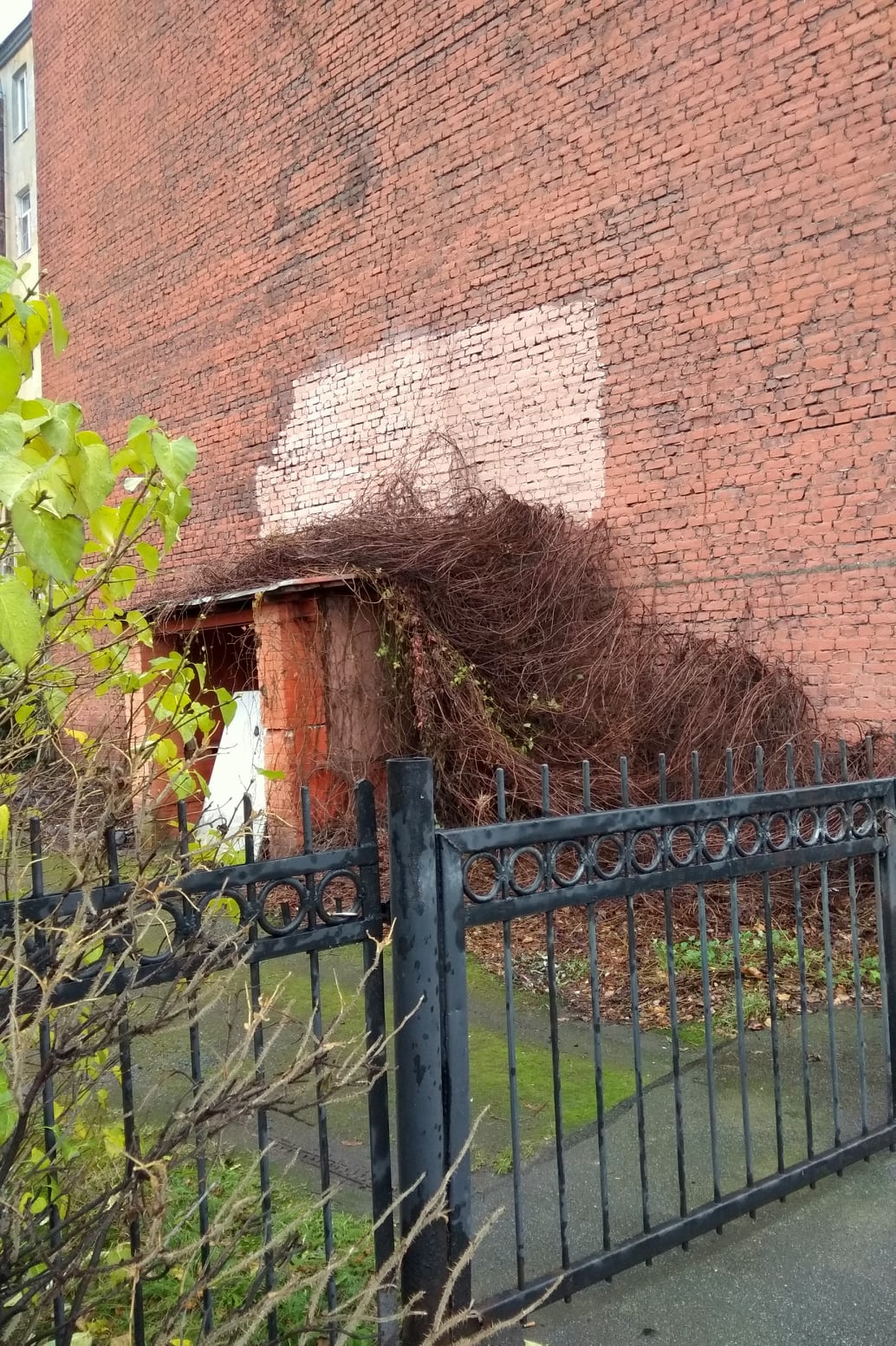 На Камской улице на Васильевском острове упала стена винограда, обвивавшая часть дома. Об этом сообщили местные жители в группе «От Стрелки до Гавани».