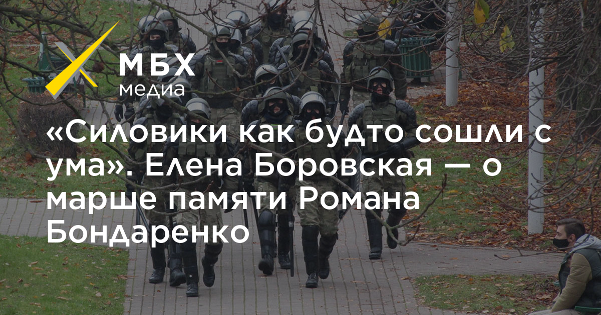 Смерть Бондаренко стала закономерным итогом новой тактики МВД в отношении протестов — после смены Александром Лукашенко главы ведомства 29 октября силовики как будто сошли с ума. На улицах стали хватать не только студентов, но и медиков, артистов, женщин, разгоняли любые собрания — не трогают пока только пенсионеров и инвалидов. На высоких оборотах заработали репрессивные механизмы: людей забирали из домов и арестовывали за участие в старых акциях. С 1 ноября против задержанных на маршах, в том числе журналистов, стали возбуждать уголовные дела за «организацию и подготовку действий, грубо нарушающих общественный порядок» — помимо привычных административок. 8 и 15 ноября на воскресных протестных шествиях было предельное количество силовиков и техники, пытались рассеивать малейшие скопления людей, целенаправленно избивали в кровь, ломали кости. Эти марши стали рекордными по количеству задержанных.