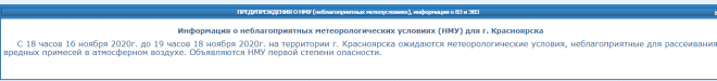 Режим НМУ первой степени опасности будет действовать на территории города с 19:00 16 ноября до 19:00 18 ноября.При введении I степени НМУ не рекомендуется выходить на улицу, проветривать квартиру уличным воздухом, заниматься спортом в закрытых помещениях. Также водителям советуют воздержаться от поездок на личном транспорте.