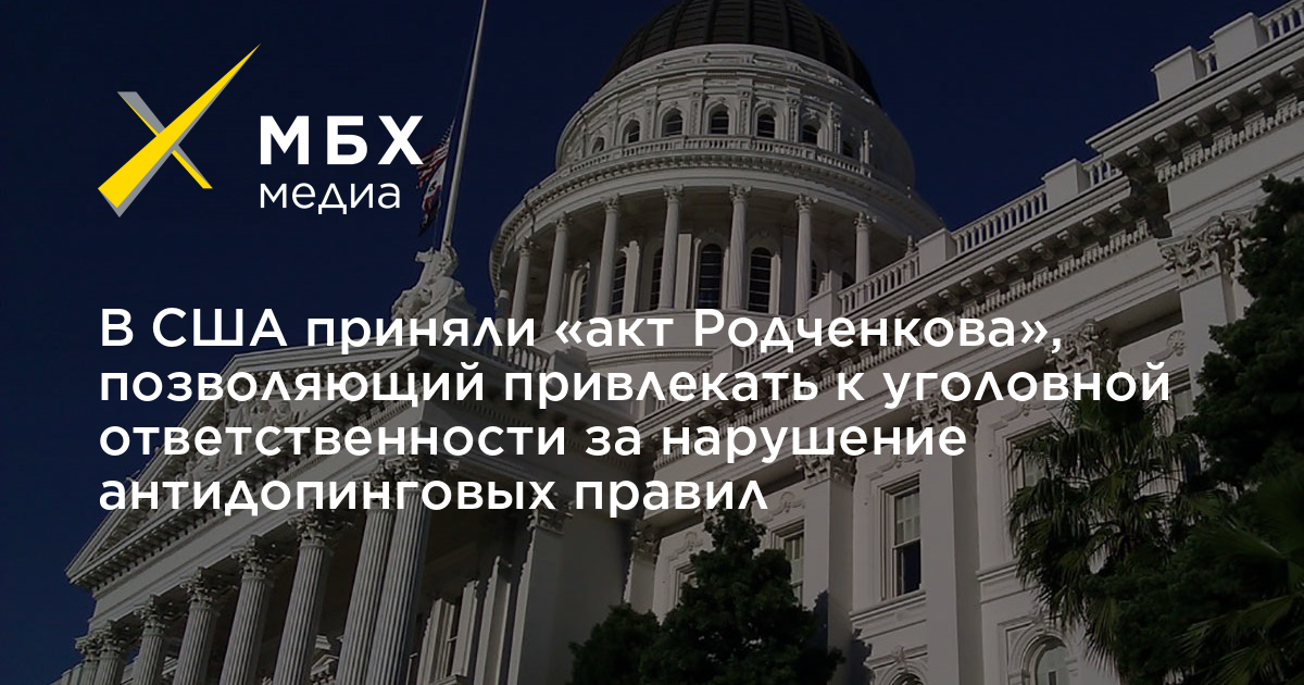 В США приняли «акт Родченкова», позволяющий привлекать к уголовной ответственности за нарушение антидопинговых правил