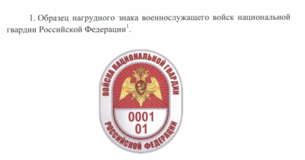 Как говорится в документе, на нагрудном знаке будет «условный номер воинской части» (четыре верхние цифры), и две нижние цифры, определяющие нумерацию.