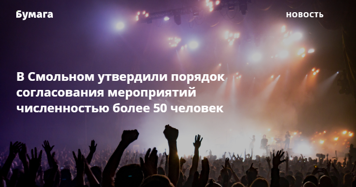Власти Петербурга утвердили порядок согласования культурных и зрелищных мероприятий численностью более 50 человек. Об этом сообщает пресс-служба Смольного.