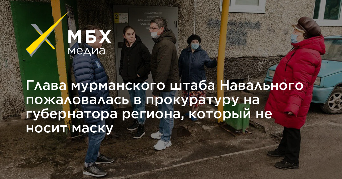 Глава мурманского штаба Навального пожаловалась в прокуратуру на губернатора региона, который не носит маску