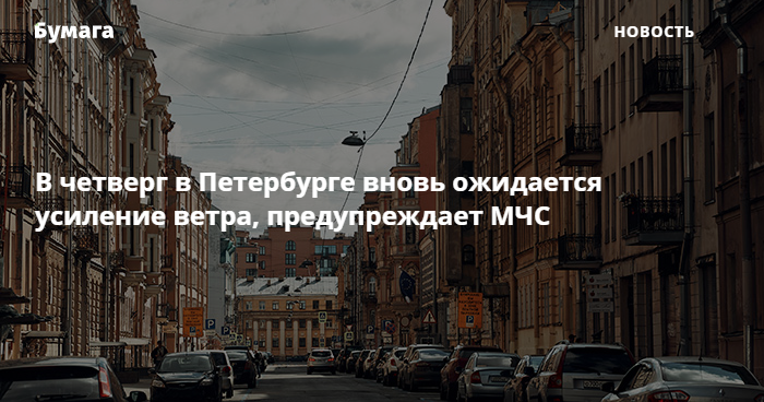 В четверг в Петербурге вновь ожидается усиление ветра