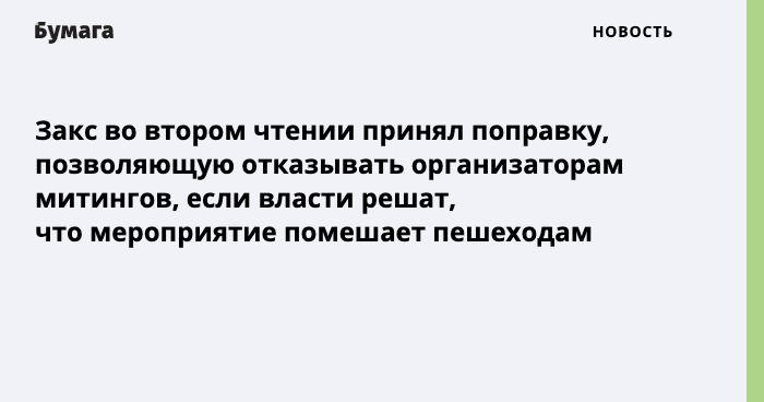 Закс во втором чтении принял поправку, позволяющую отказывать организаторам митингов