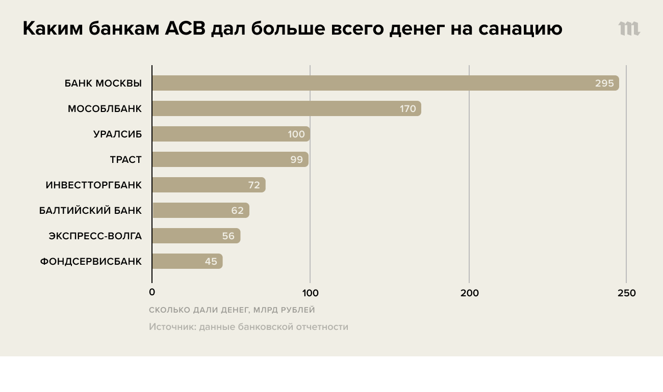 Ключевую роль тут тоже играло АСВ. Именно агентство просчитывало для ЦБ варианты, как лучше поступить с конкретным банком — отправить на санацию или же на ликвидацию, говорит крупный действующий банкир. Именно АСВ определяло, сколько денег понадобится для спасения банка. Формально заключение о размере «дыры» в балансе дает комиссия, куда входят представители и ЦБ и АСВ, но два банкира — бывший и действующий — сходятся во мнении, что в основу ложились оценки агентства.