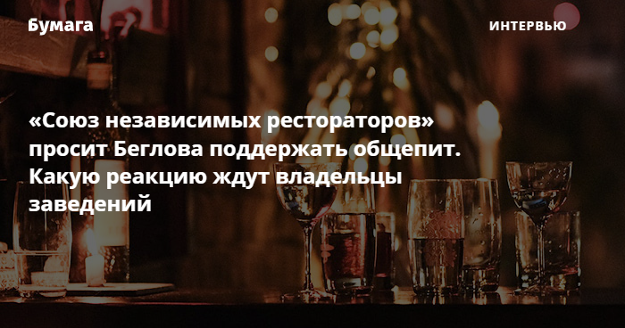 «Союз независимых рестораторов» просит Беглова поддержать общепит