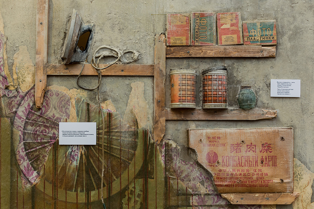 «Сохрани мою тень» — это выдуманное пространство, реконструирующее 60-е и 70-е годы ХХ века. Проект не претендует на историческую достоверность: куда более точное воссоздание того времени можно найти, например, в знаменитых «Полутора комнатах». У авторов уличной выставки в саду Фонтанного дома была другая цель — превратить образ коммунальной квартиры поэта в псевдоархеологическую инсталляцию.