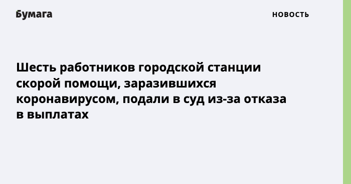 Шесть работников городской станции скорой помощи, заразившихся коронавирусом, подали в суд из-за отказа в выплатах