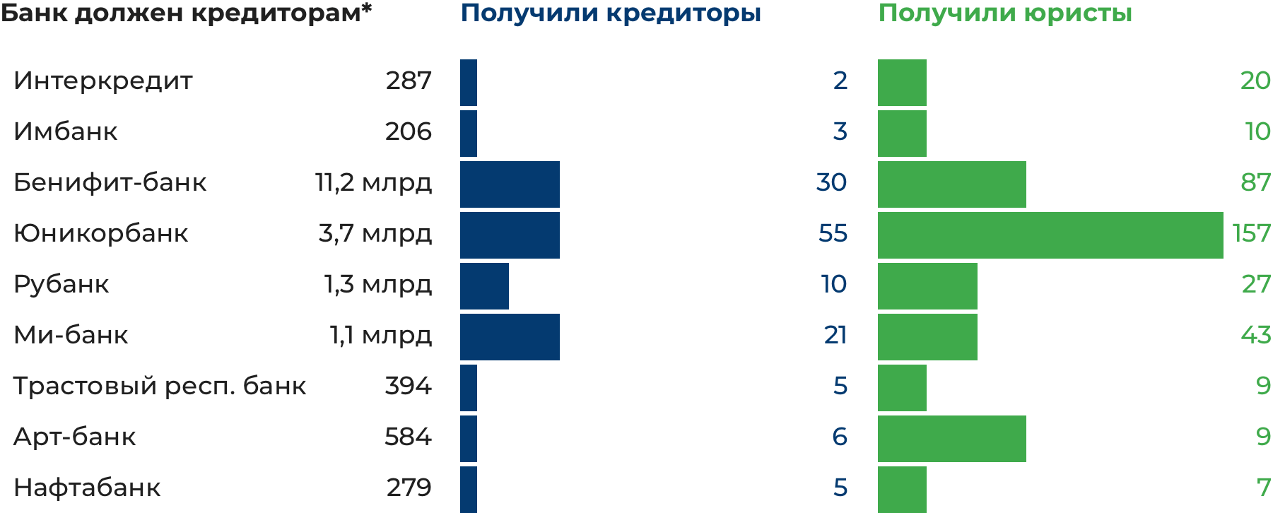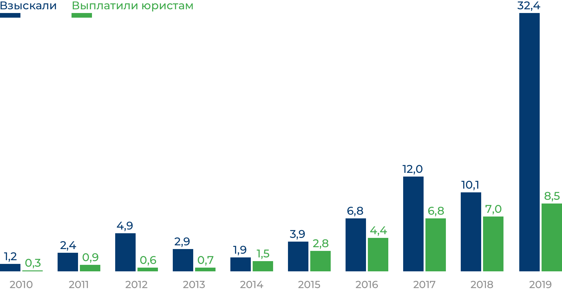 Эффективность работы привлеченных АСВ юристов и торговых площадок можно оценить по годовому отчету госкорпорации. В 2019 году в конкурсную массу банков с отозванной лицензией поступило 110 миллиардов рублей. Из них 60 миллиардов вернулось «в добровольном порядке», а 48 миллиардов — усилиями АСВ. Из этих 48 млрд через суд вернули 32 миллиарда и еще 16 миллиардов рублей добавилось от продажи имущества. При этом на оплату юристов было потрачено 8,5 миллиардов рублей.