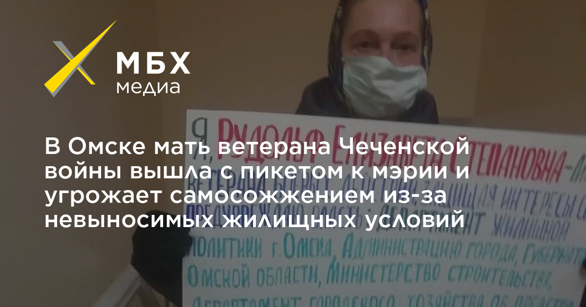 В Омске мать ветерана Чеченской войны вышла с пикетом к мэрии и угрожает самосожжением из-за невыносимых жилищных условий