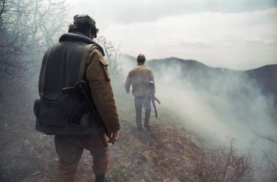 Нагорный Карабах. 1 апреля 1993 г. Военные по дороге в Хцаберд. Мамонтов Сергей, Неменов Александр / ТАСС