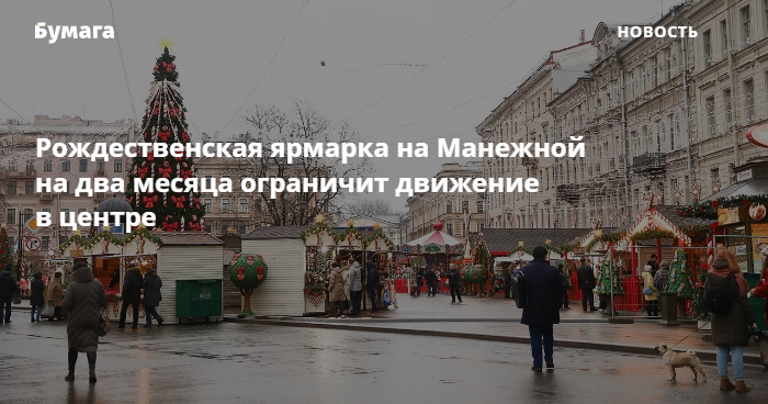 Движение на центральных улицах Петербурга ограничат из-за проведения рождественской ярмарки на Манежной площади. Об этом сообщает комитет по развитию транспортной инфраструктуры.
