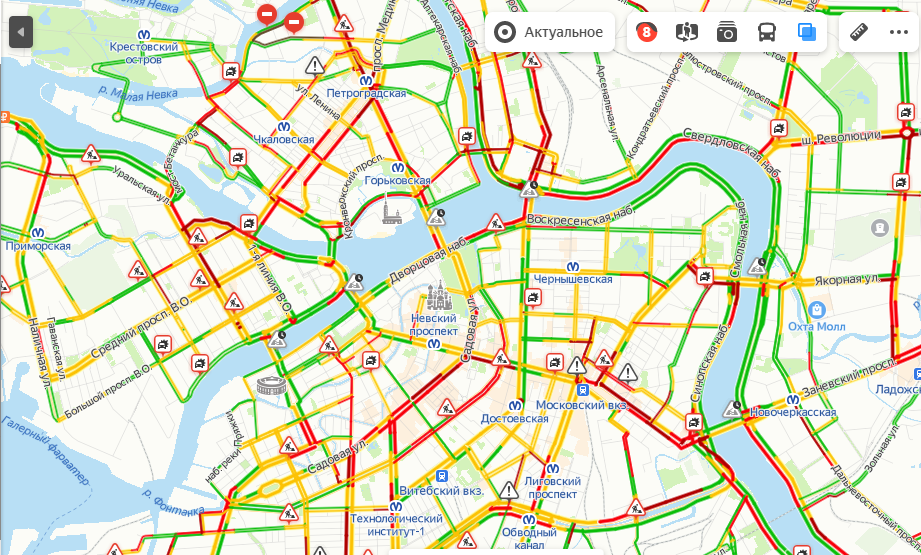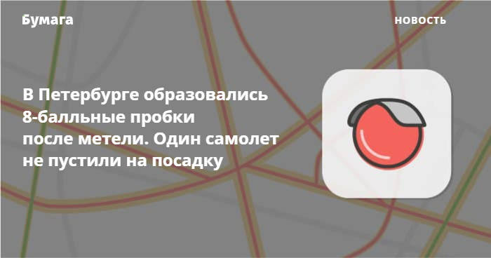 Днем 20 ноября в Петербурге образовались 8-балльные пробки, следует из данных сервиса «Яндекс.Карты». В Пулкове один самолет не пустили на посадку, сообщила «Бумаге» пассажирка рейса.