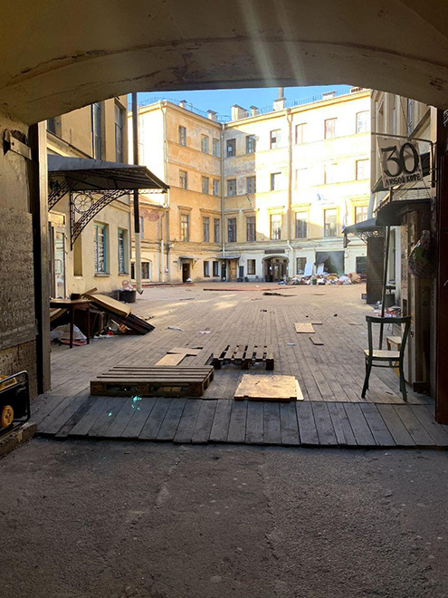 В марте по всей стране начали вводить жесткие ограничения против коронавируса, временно закрыли заведения общепита и досуга — в том числе в городских кластерах. Тогда «Голицын Лофт» на набережной Фонтанки, каким его знали горожане и туристы, прекратил свое существование: после снятия ограничений он так и не вернулся к работе.