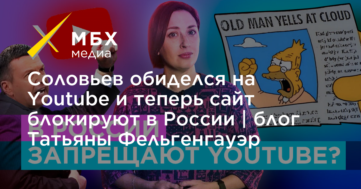 Соловьев обиделся на Youtube и теперь сайт блокируют в России | блог Татьяны Фельгенгауэр