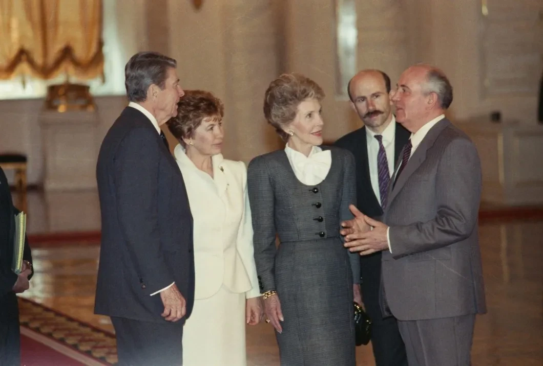 Палажченко вспоминает, как в 1991 году после переговоров Горбачева с уходящим президентом США Рейганом и только что избранным Бушем-старшим все трое сфотографировались: