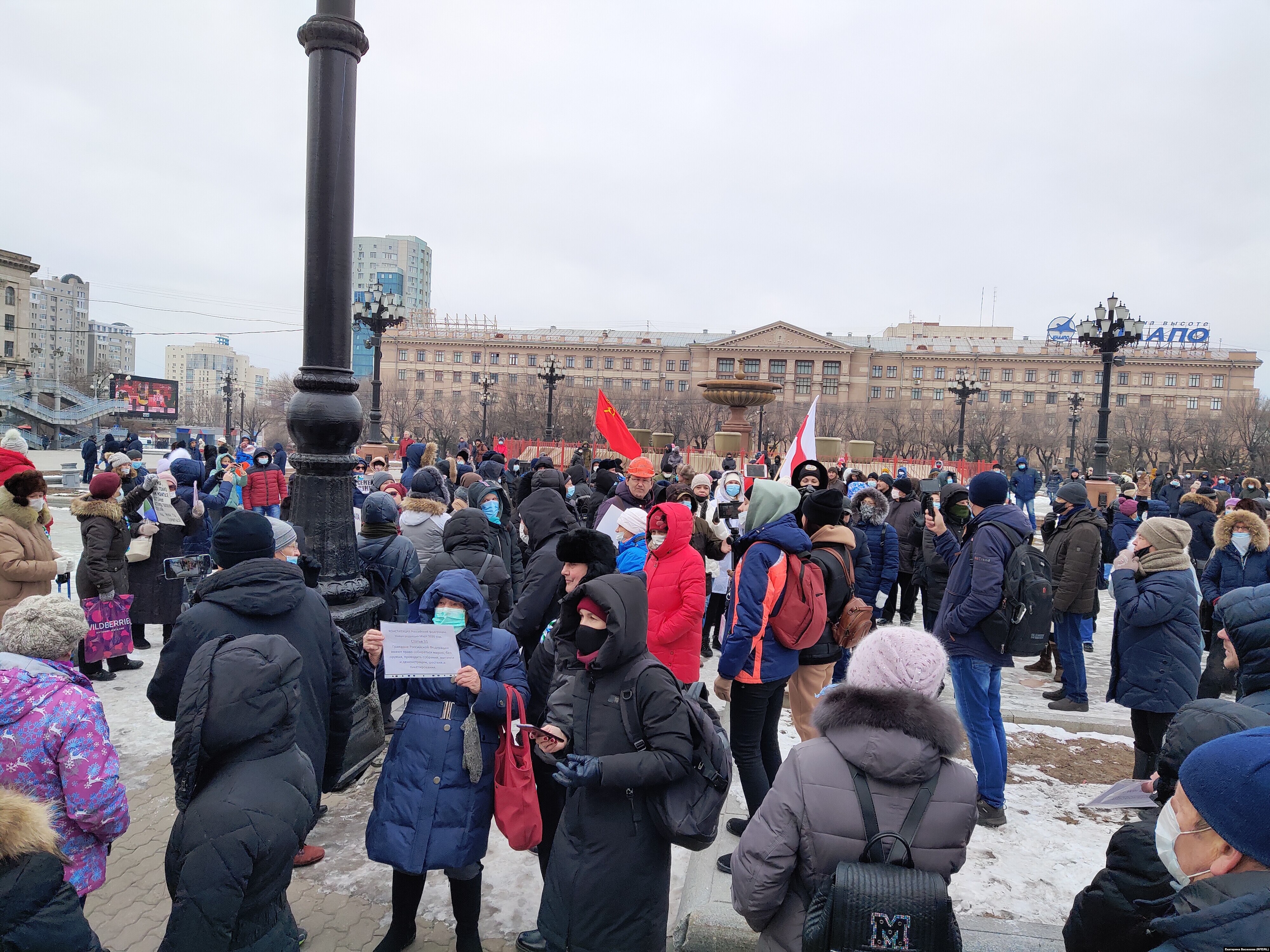 Около 300 человек в Хабаровске вышли на 134 акцию поддержки экс-губернатора края Сергея Фургала. Как сообщает корреспондент Сибирь.Реалии, несмотря на предупреждения полицейских, состоялся и митинг и традиционное шествие. Жители вновь собрались на главной городской площади у здания краевого правительства. После непродолжительного митинга люди устроили прогулку по улицам города.