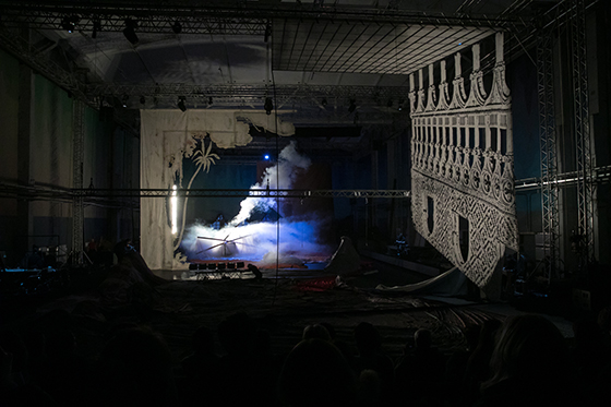 В финале спектакля похожие чувства испытывает и его главный герой: под занавес он уже сам становится режиссером великой иллюзии, пытается управлять ею, тщетно силится соединить фрагменты сценографии разных актов в гармоничную эпическую картинку — но части пазла, как ни крути, не собираются в единое целое.
