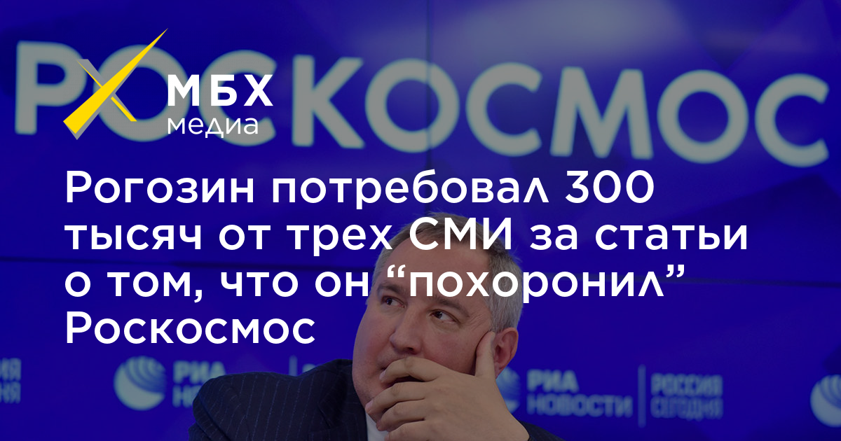 Глава Роскосмоса Дмитрий Рогозин потребовал 300 тысяч рублей от трех СМИ за статьи о том, что он «гробовщик российского космоса». Об этом «МБХ медиа» сообщили в пресс-службе Останкинского районного суда, куда и поступил иск.
