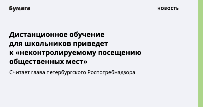 Наталия Башкетова пишет, что перевод детей на дистанционное обучение может привести к неконтролируемому посещению ими общественных мест, а это в дальнейшем, по мнению главы петербургского Роспотребнадзора, приведет к формированию множественных домашних очагов инфекции. А это, в свою очередь, может привести к росту заболеваемости среди пожилых и увеличению количества летальных исходов.