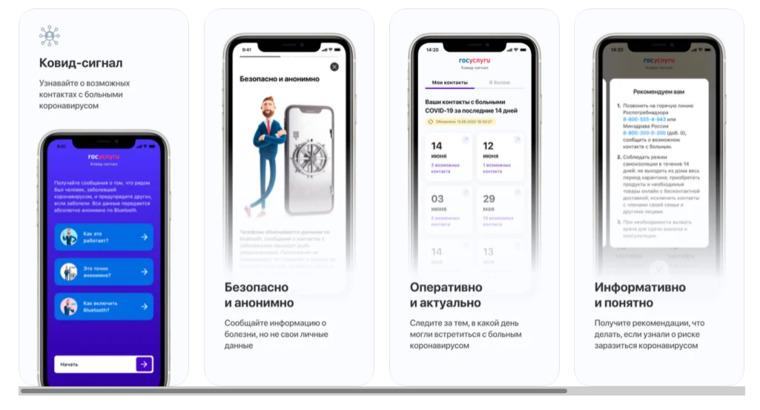Министерство цифрового развития запустило свой сервис для отслеживания заражённых коронавирусом. Приложение с названием «Госуслуги. COVID трекер» «Открытые медиа» обнаружили в магазине Play Market для операционной системы Android. Позже «Медуза» написала о появлении его в App Store. Власти уверяют в безопасности и анонимности программы.