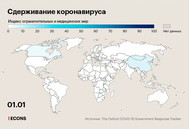 Весной тренд был единым практически для всего мира, отличалась только скорость ужесточения ограничений. Исключением тогда был Китай, который первым, еще в январе, начал борьбу с коронавирусом, а уже к концу марта объявил о снятии многих ограничений, тогда как большинство стран мира в тот момент активно их вводили.
