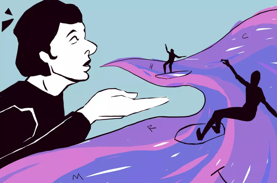— Нет, не совсем. Поток сознания близок к этому, но корректно назвать это именно потоком речи. Такой сёрфинг, который сам поднимает волну, и сам же на этой волне дальше движется.