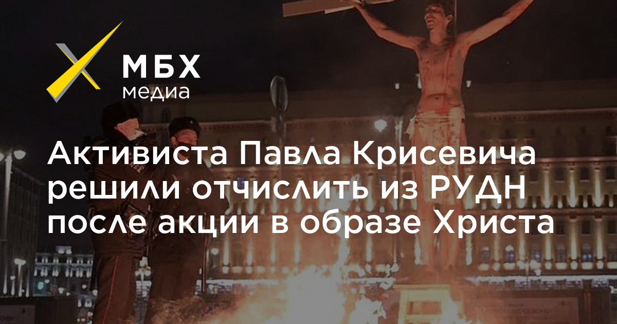 Дисциплинарная комиссия РУДН приняла решение отчислить активиста Павла Крисевича, который принимал участие в акции в поддержку политзаключенных в образе Христа около здания ФСБ в Москве. Об этом Крисевич рассказал «МБХ медиа».