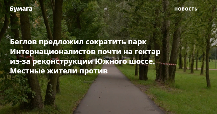 Парк Интернационалистов могут сократить на 0,9 гектара из-за реконструкции Южного шоссе. Соответствующую поправку в закон о ЗНОП внес губернатор Петербурга Александр Беглов, на сайте Закса законопроект опубликован 20 ноября. Местные жители выступают против.