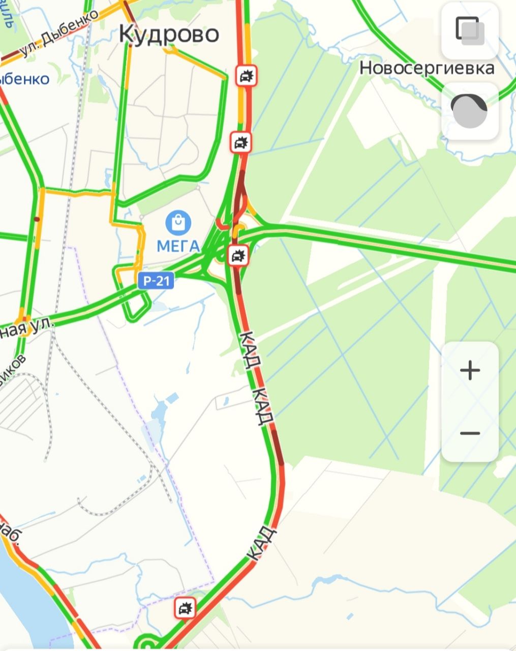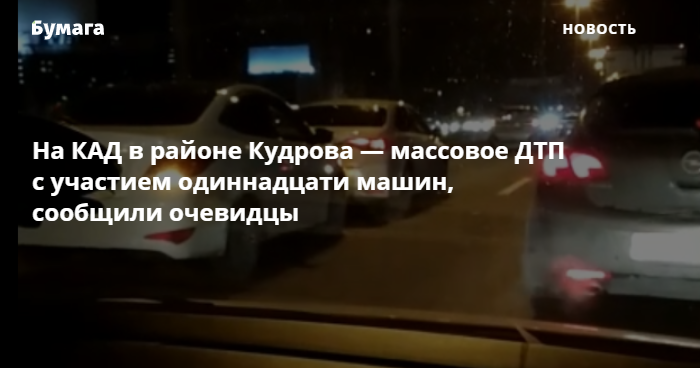 Вечером 24 ноября на КАД в районе Кудрова образовалась пробка из-за массового ДТП. Об этом сообщили в группе «ДТП и ЧП» во «ВКонтакте».