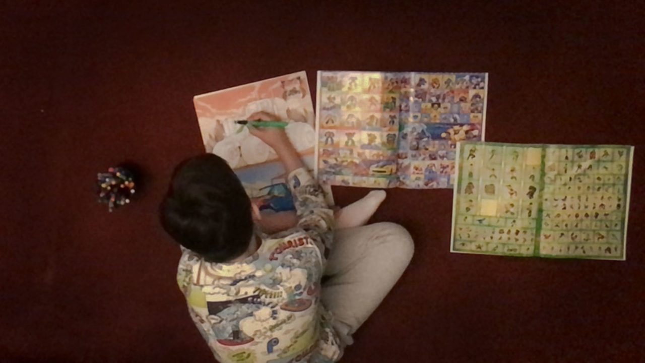 Тимур немного испуганно, но доброжелательно смотрит на меня из-под маски, теребит очки с голубой оправой, честно пытается усидеть на мягком диване, но заваливается на спину в обнимку с подушкой. Говорит, что любит рисовать — и компьютеры.