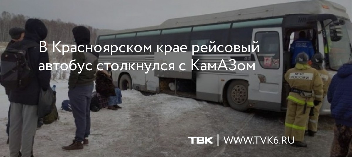 В Красноярском крае рейсовый автобус столкнулся с КамАЗом