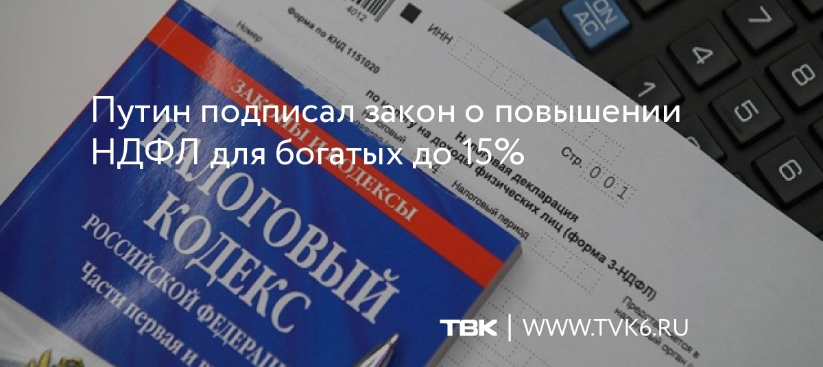 Путин подписал закон о повышении НДФЛ для богатых до 15%