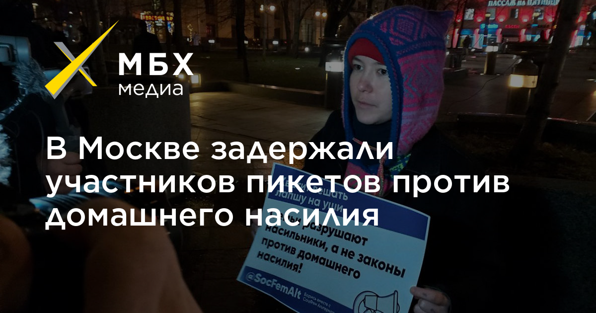 В Москве полицейские задержали троих участников одиночных пикетов против домашнего насилия. Об этом сообщает корреспондент «МБХ медиа».