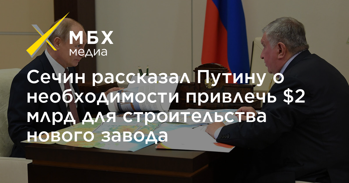 Сечин рассказал Путину о необходимости привлечь $2 млрд для строительства нового завода