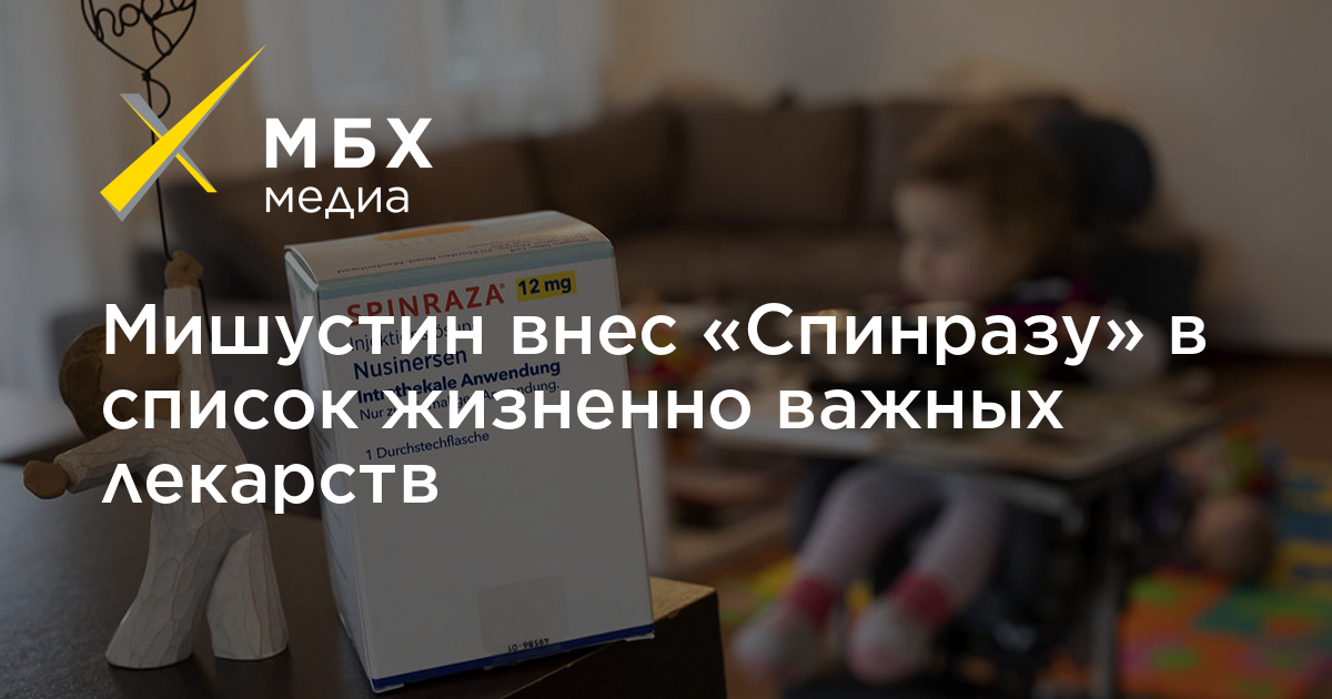 Премьер-министр Михаил Мишустин внес препарат «Спинраза» в перечень жизненно необходимых и важнейших лекарственных препаратов (ЖНВЛП). Распоряжение опубликовано на официальном интернет-портале правовой информации.