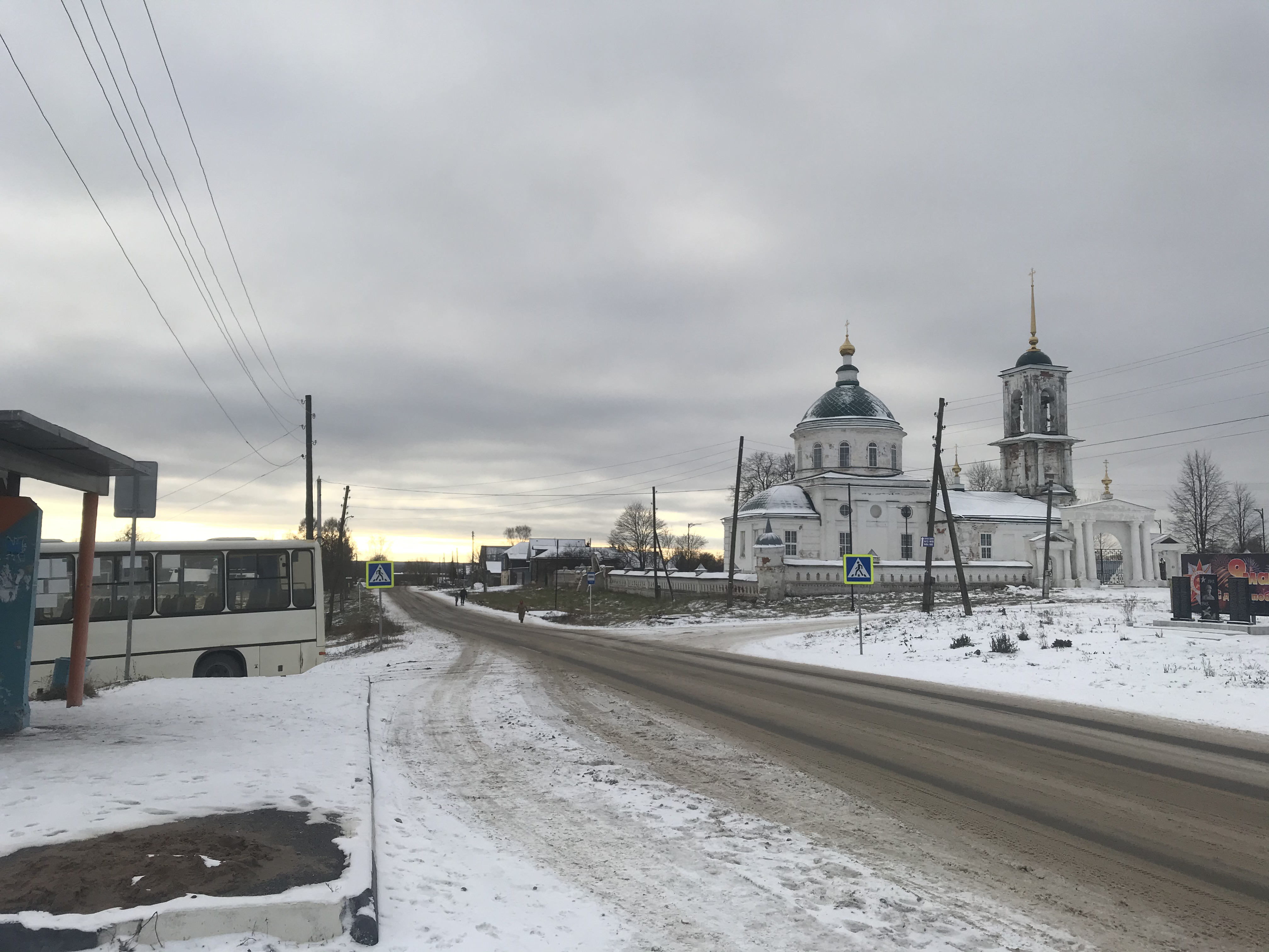 Горки в десять раз больше Макарихи — около трехсот жителей, есть магазин, Дом культуры и довольно крупная церковь, построенная 220 лет назад. До Камешково — это районный центр — на машине можно добраться за двенадцать минут — по неочищенной от снега дороге, вдоль которой то и дело попадаются полуразрушенные, давно покинутые хозяевами деревянные домики. Такие же покосившиеся, брошенные дома встречаются и в самой деревне.