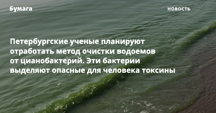 Ученые лаборатории гидробиологии Института озероведения РАН планируют в 2021 году отработать методы очистки водоемов Петербурга от токсичных цианобактерий, которые могут быть опасны для человека. Об этом сообщает ТАСС со ссылкой на заведующего лабораторией Евгения Курашева.