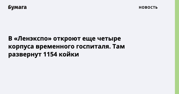 Во вновь вводимых корпусах развернут 1154 койки, в том числе 15 реанимационных с аппаратами ИВЛ. Всего во временном госпитале «Ленэкспо» развернут 2500 коек.