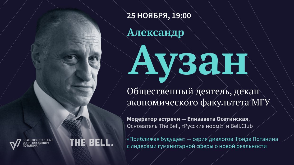 Сегодня в 19:00 по московскому времени Благотворительный фонд Владимира Потанина в партнерстве с The Bell проведет шестую онлайн-встречу в рамках проекта «Приближая будущее» — открытый разговор об уроках кризиса и о ценностях завтрашнего дня.