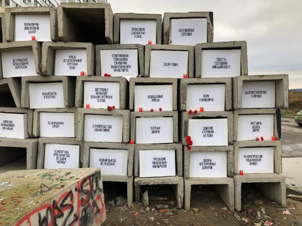 На Старорусском проспекте в Шушарах (внутригородское образование в составе Санкт-Петербурга — прим.ред.) появился «колумбарий шушарских надежд» — арт-объект, посвящённый обещаниям городской администрации.