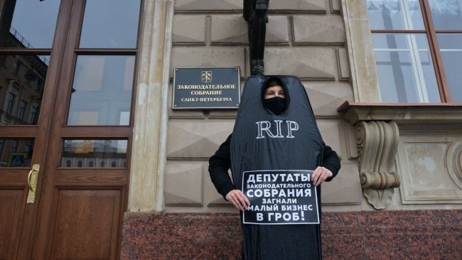 Активист вышел к Законодательному собранию Санкт-Петербурга с плакатом «Депутаты законодательного собрания загнали малый бизнес в гроб». Он считает, что депутаты виновны в принятии законов, которые ухудшают положение малого и среднего бизнеса. Его задержали со ссылкой на Постановление правительства Санкт-Петербурга № 121 о мерах противодействия коронавирусу.