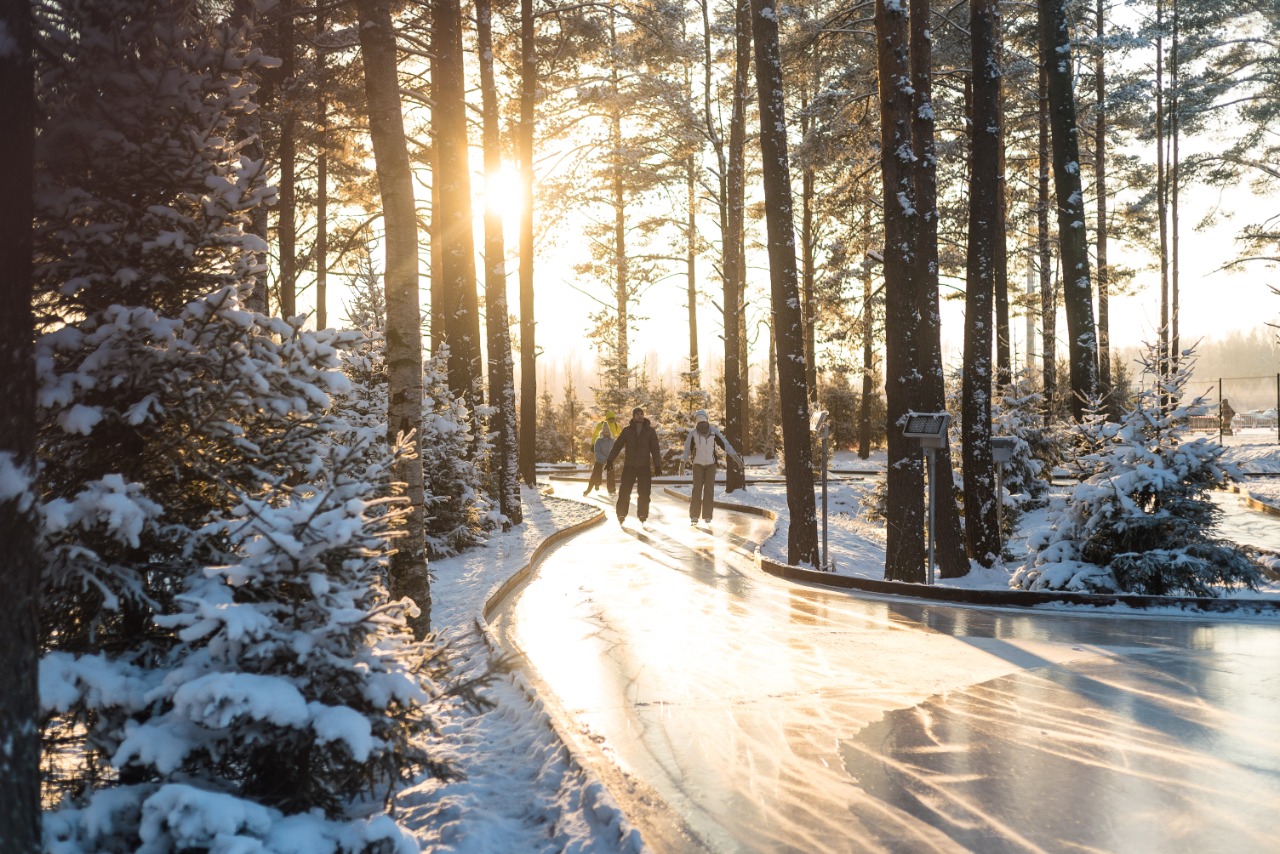 Каток находится в сосновом лесу. Протяженность ледовых дорожек — 1,5 километра.