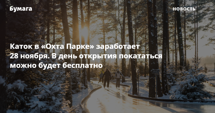 С 28 ноября на курорте «Охта Парк» вновь заработает лесной каток. Об этом «Бумаге» сообщили в пресс-службе компании.