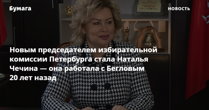 Члены Горизбиркомпа избрали экс-главу Курортного района Наталью Чечину новым председателем избирательной комиссии Петербурга. Об этом объявили в ходе онлайн-трансляции с заседания.